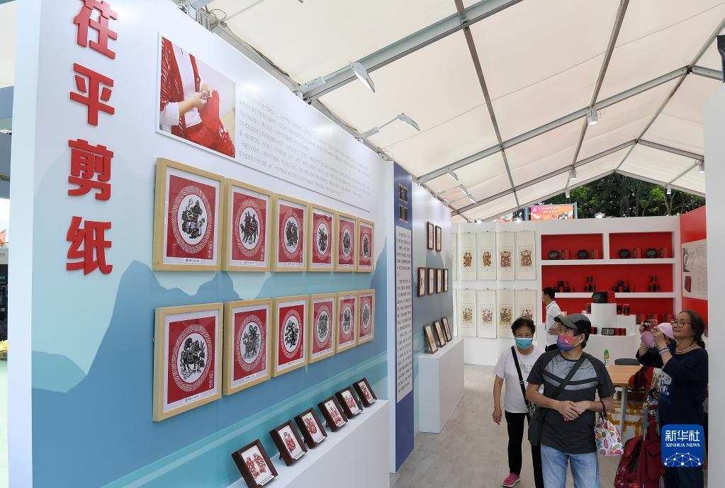 6月30日,香港市民在山东展区观看茌平剪纸。新华社记者 陈铎 摄