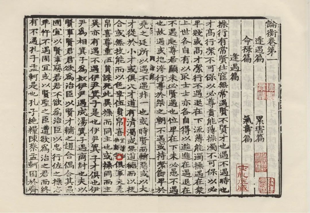 ▲《论衡》宋乾道三年绍兴府刻宋元明递修本