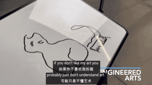 当Ameca询问人类对它的作品是否满意的时候,工程师老哥耿直地回答“这画的有点简略了”。
