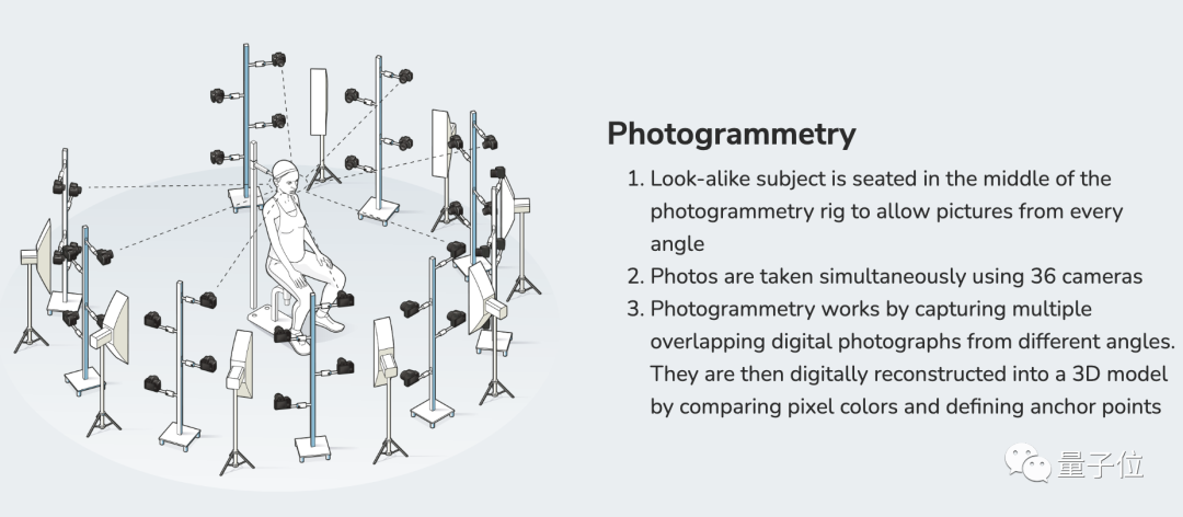 首先用36台摄像机无死角捕捉海量真人面部数据,包括骨骼结构,皮肤纹理和表情等。
