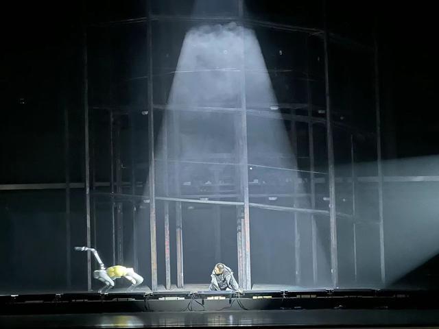 《骆驼祥子》排练期间,常有上话的兄弟剧组来到排练厅串门,目标便是剧中极具新意和风格的道具——机械骆驼。“机械骆驼”本体是工业级机器狗B1,舞台上它会多次出现在祥子身旁,甚至与演员“飙戏”。启用“机械骆驼”的灵感始于四月份,当时何念与主创基本确定了全剧采用倒叙结构,众人一时突发奇想,询问了处于话题中心的AI程序的意见,却“惊恐”地发现AI给出了类似的答案。“我们刚想出这个方案,竟然与AI不谋而合,令人有些起鸡皮疙瘩。”