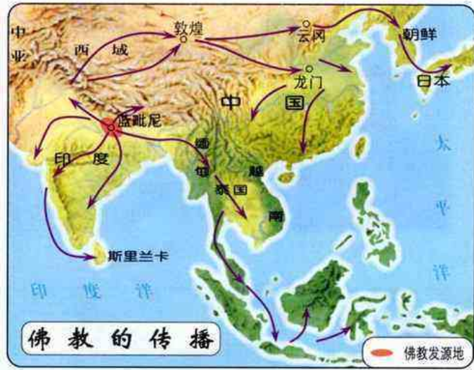 从魏晋到隋唐,佛教在西域和中原都得到广为传播,著名的莫高窟、大同云冈石窟等等佛教胜迹,就是这一时期修筑的。