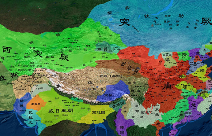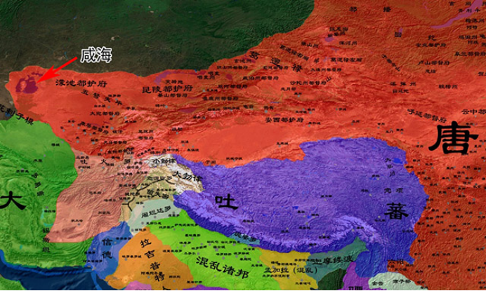 8世纪初,唐军联合西域诸国灭亡了西突厥,安西都护府管辖的疆域达到最大,差不多有300万平方公里,西界超越西域都护府的巴尔喀什湖,抵达咸海一线。中原王朝对西域的统治达到了顶峰。