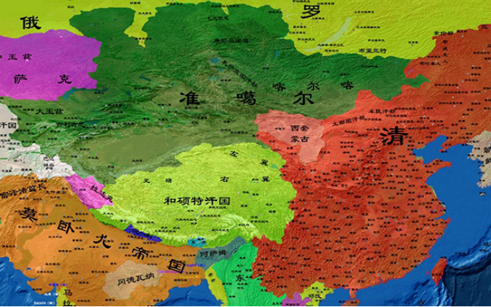 ▲18-19世纪的清灭准噶尔形势,伊犁为行政驻地
