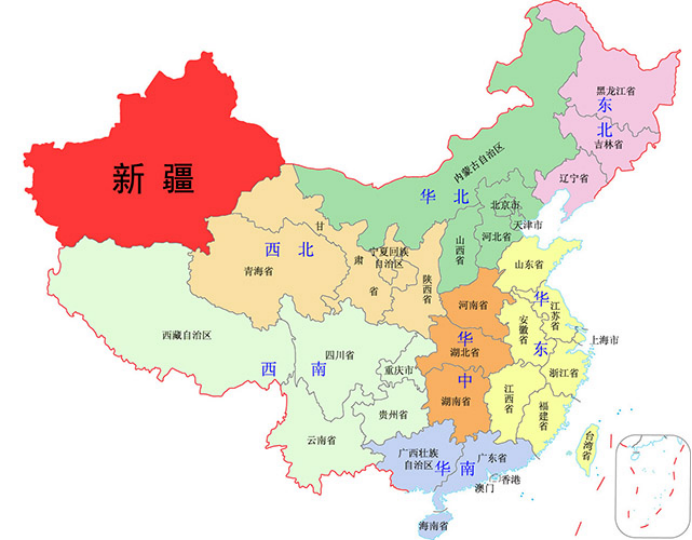 新疆是中国陆地面积最大的省级行政区,达166万余平方公里,占国土总面积960万平方公里的六分之一。