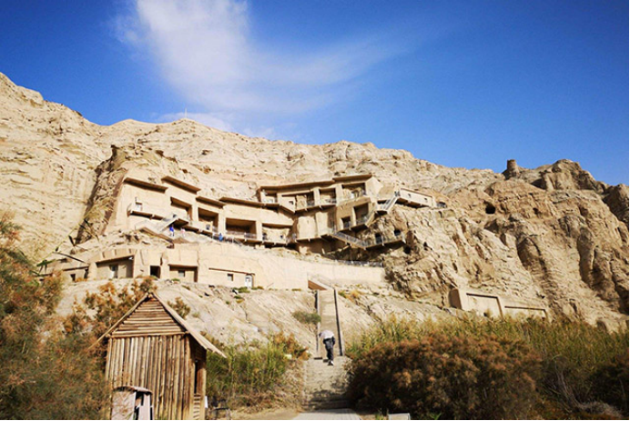 ▲今新疆拜城县的石窟遗迹,可见佛教曾在西域十分兴盛