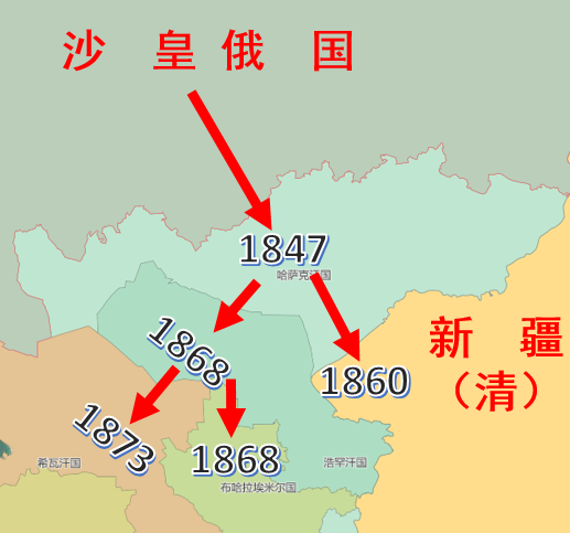 1840年,鸦片战争清朝战败,沙俄开始在新疆和东北两个方向蚕食中国领土。清朝没有对国界线进行过明确划分,清军只在伊犁河上游的农耕区设置哨所,中下游至巴尔喀什湖之间都未设防,这片区域内生活着许多哈萨克牧民。