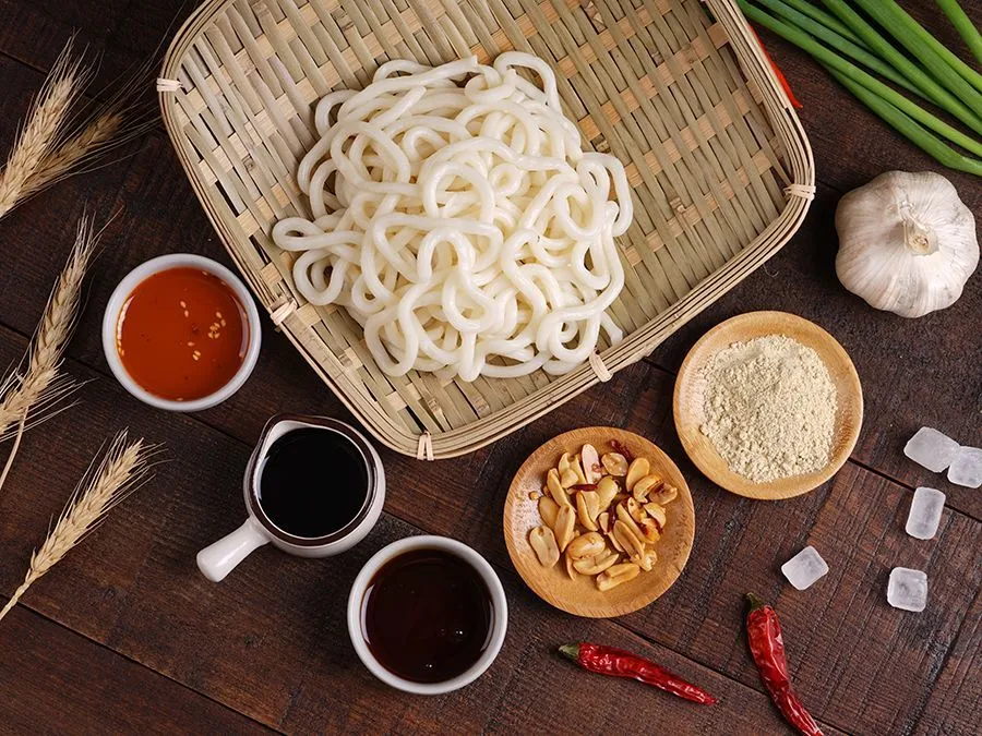 面团揉好了,再将它切成小条,拉成食指粗细的面条,就对了。细了挂不住浆水、粗了不好入口,恰到好处的比率,是川人千百年来舌尖经验的累积。
