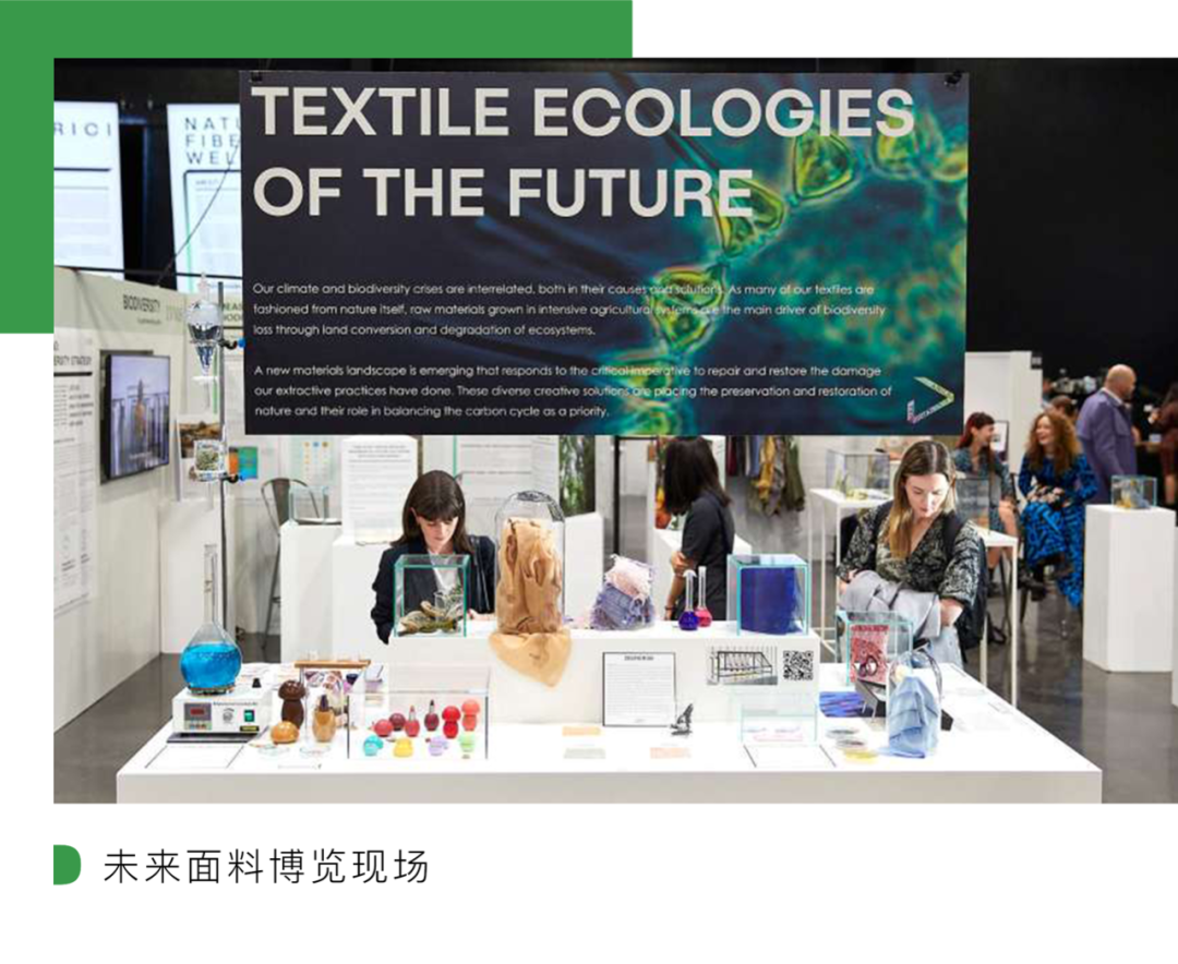 未来面料博览会由瑞士非营利组织 The Sustainable Angle 创立运营。作为最大的可持续材料展示平台,未来面料博览会重点关注自然、气候和生物多样性的保护与再生。本次展会面积达 3.4 万多平方英尺,涵盖整个纺织供应链的 10000 多种材料和解决方案。