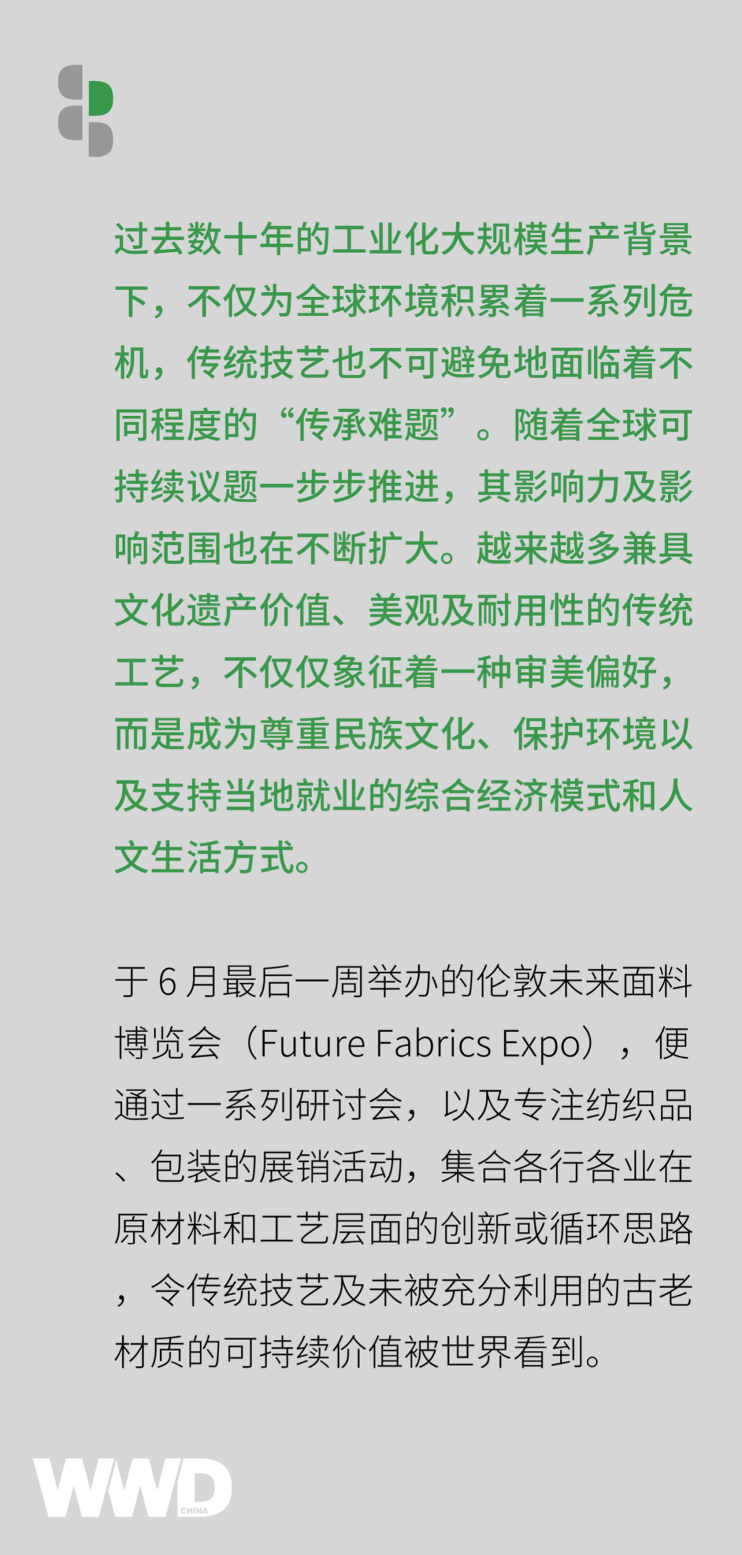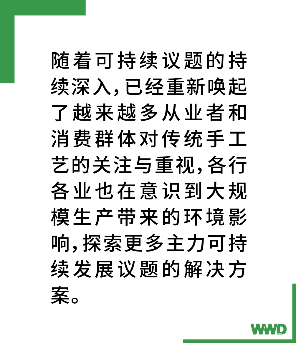 近年来,随着可持续议题的持续深入,已经重新唤起了越来越多从业者和消费群体对传统手工艺的关注与重视,各行各业也在意识到大规模生产带来的环境影响,探索更多主力可持续发展议题的解决方案。