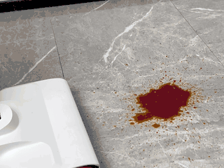 同样的,我们将酱油和牛奶等洒在地上模拟垃圾场景,石头A10 UltraE 对于酱油这些污渍的清洁还是非常彻底的,基本上洗地机一过去地板就已经清洁干净,如果说还没有拖干净的地方,将洗地机往回拉即可。