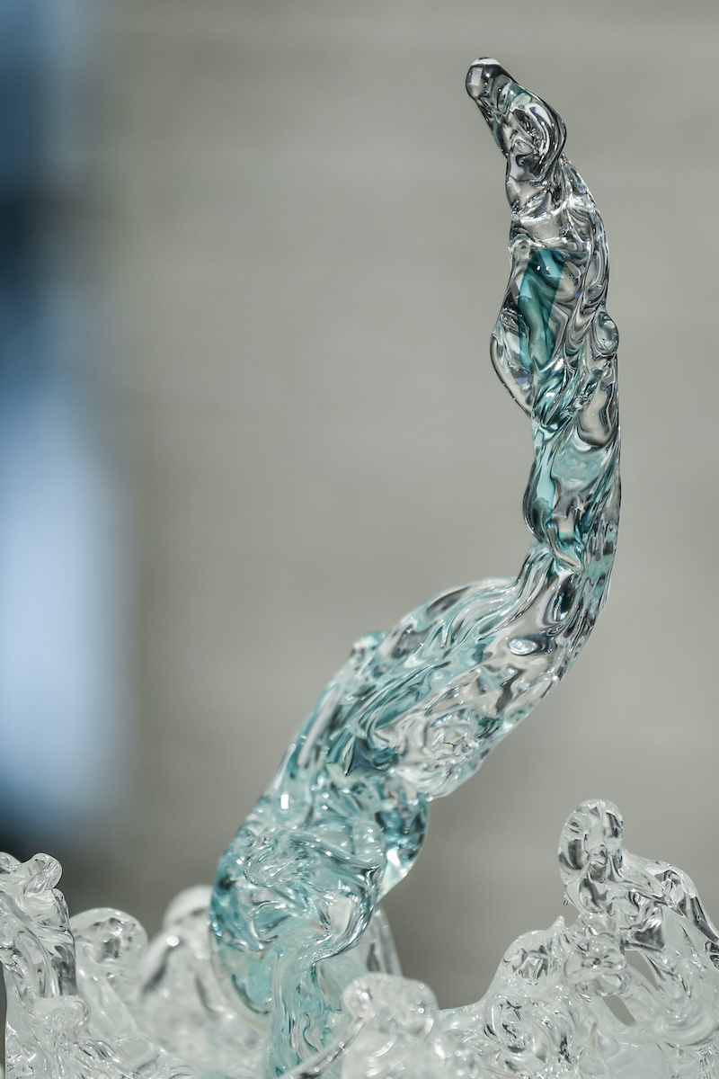 王嘉成说,“尽管现在3D打印已经在打玻璃了,但是它打出来的感觉跟手作的还是非常的不同,因为如果打印出来的话它更像钻石的设计,多少面,多少切割点,有很明显的设计过的痕迹,而在我自己的玻璃创作中,随机烧出来的每件作品,哪怕具体到每个弧度都是我现场的感知,这也是艺术家非常有魅力的点,他自己都没有办法复制自己,何况是AI本身。”参展艺术家陈欣也讲道:“我不担心AI技术对艺术创作的挑战和影响,因为艺术的功能还是在于抚慰人心。”