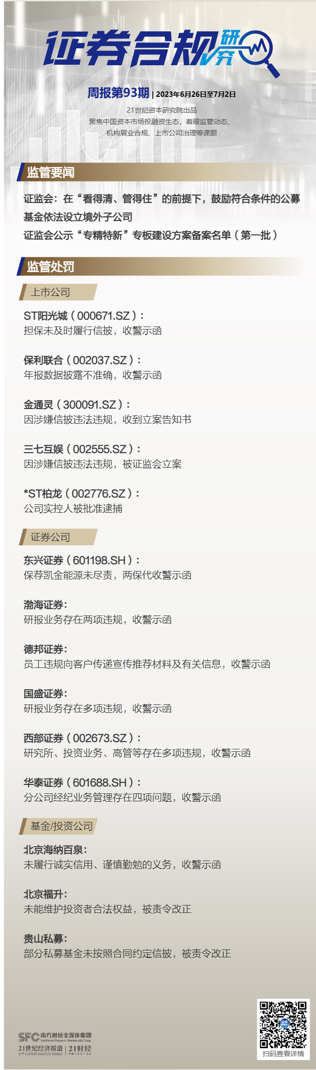 6月30日,根据《关于高质量建设区域性股权市场“专精特新”专板的指导意见》有关要求,北京、浙江等省级(含计划单列市)人民政府办公厅已将区域性股权市场“专精特新”专板建设方案报送证监会备案。