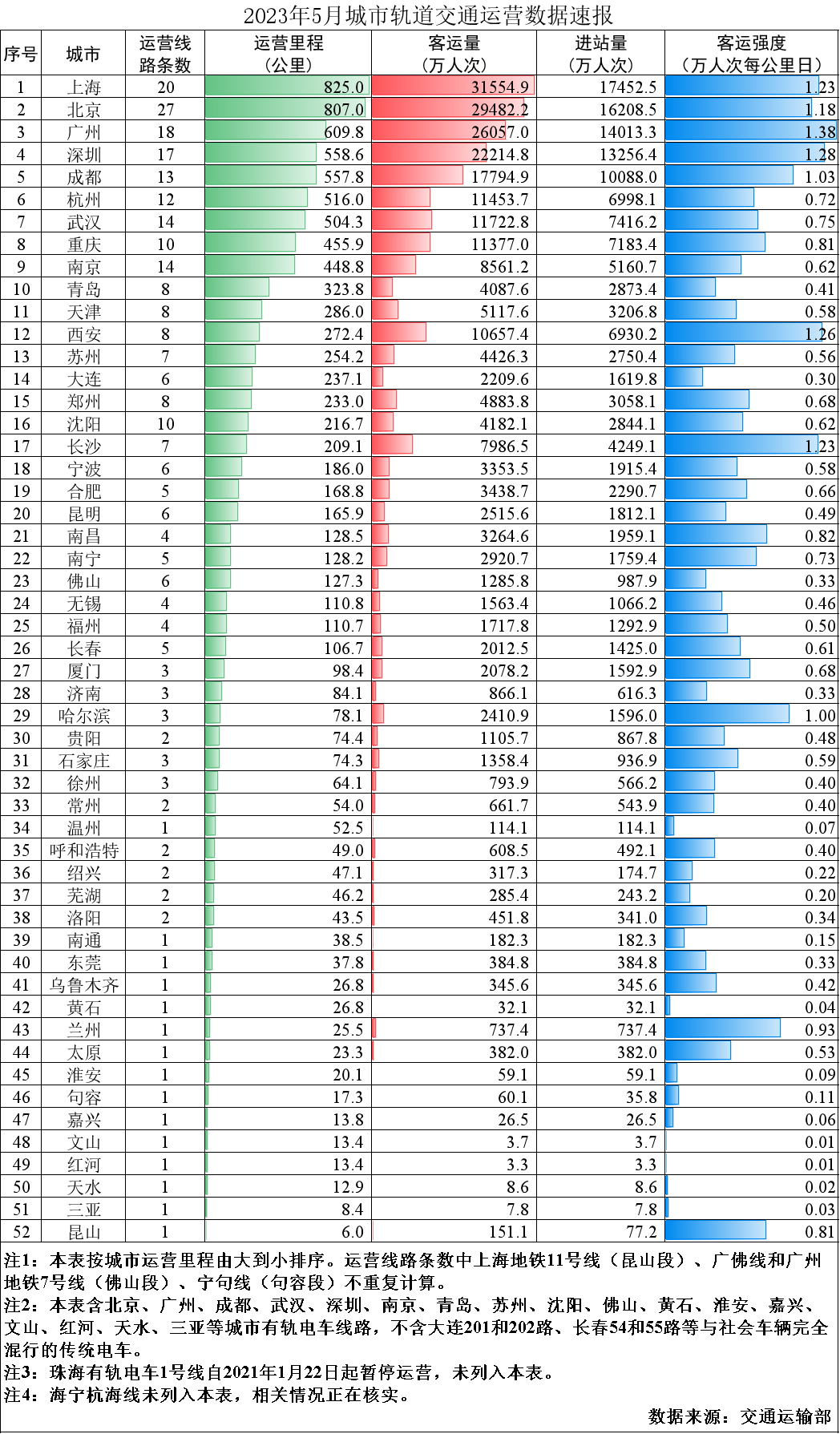 《2023年5月城市轨道交通运营数据速报》,来源:微信公众号“交通运输部”