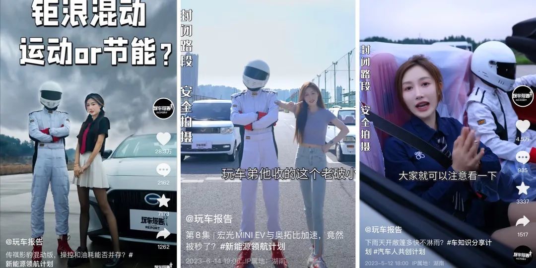 而接下来,黄海涵也已经对账号有了新的规划。“一是打算参考下其他账号达人向的玩法,把玩车弟和玩车妹这两个人设拔高一下,让@玩车报告的粉丝粘性变得更强;二是希望能走出去,和中国的人文地理结合起来,去做一些视觉冲击力更强的专业测评,然后在测评内容的框架里去做一些跨圈联动,以此拓宽粉丝的边界。”