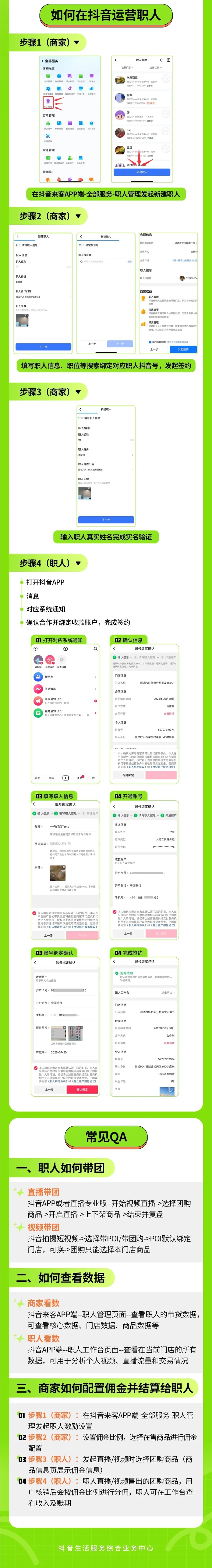 职人在抖音账号发布视频、直播等带货内容后,商家可观测到整体带货情况及变化趋势,做更针对性的培训和分析。目前该功能已支持在线佣金激励,可针对单一商品设置佣金,职人带货后即可在线获取分佣,助力商家激励员工投入意愿。