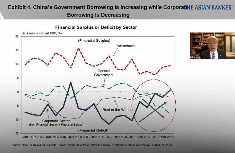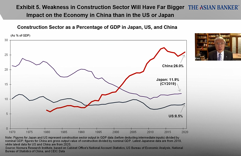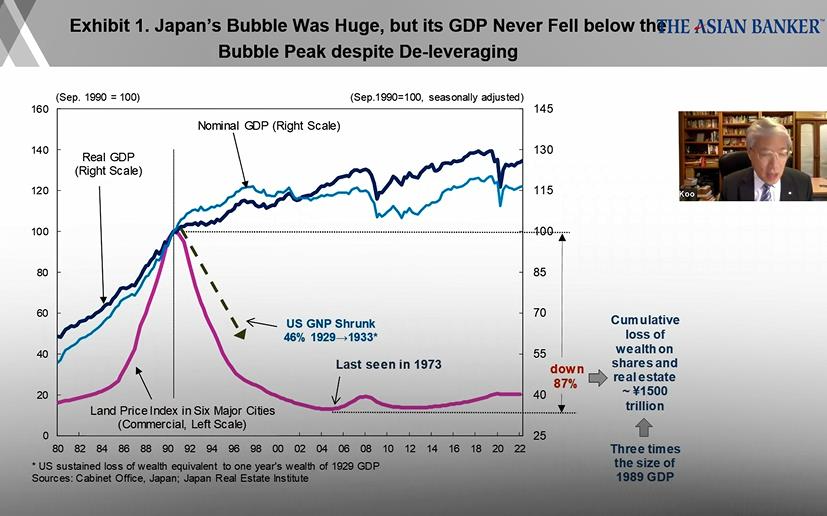 野村综合研究所(Nomura ResearchInstitute)首席经济学家辜朝明(Richard Koo)讨论了中国的房地产泡沫,并将其与1992年日本的经验进行了比较。他还引用了1929年大萧条期间美国的经历。他分析了中日两国房地产泡沫破裂的原因,以及政府财政刺激对避免经济衰退的重要性。