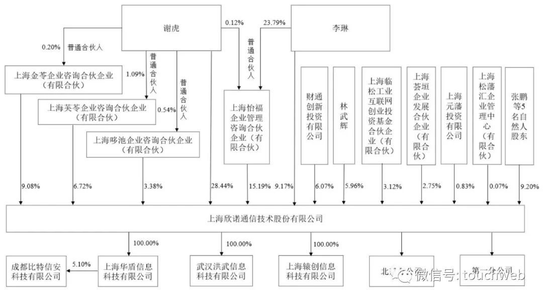 欣诺通信的实际控制人为谢虎、李琳夫妇。