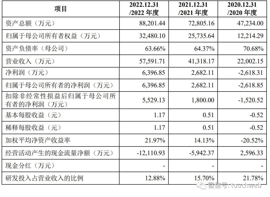 招股书显示,欣诺通信2020年、2021年、2022年营收分别为2.2亿元、4.13亿元、5.76亿元;净利分别为-2618.3万元、2682万元、6396.85万元;扣非后净利分别为-1520.5万元、1800万元、5529万元。