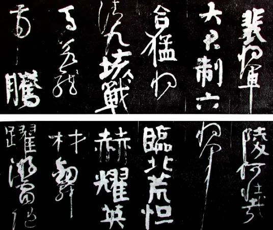 《裴将军诗》在用笔上使用篆籀笔法,“折钗股”“屋漏痕”“锥画沙”等笔法皆有体现,多体并存的同时显示出用笔的自然。在结体上突出外扩的特点,通篇气韵贯通,各字互为映照。在章法上,行距自然多变,布白疏密不一,不同字体相间,跌宕起伏,极具节奏感,尽显天然之态。颜真卿《裴将军诗》突破了魏晋以来以“空灵”“秀美”为主的审美传统,创造了一种浑厚雄壮的审美标准。