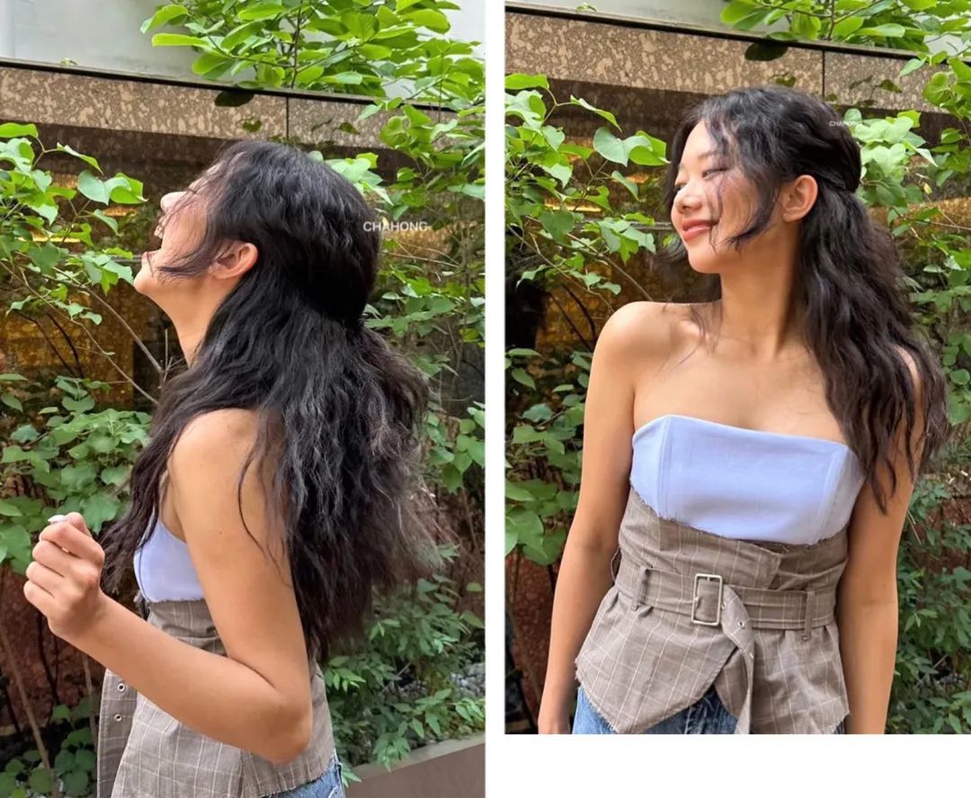你可以学日杂vivi模特扎高高,也能跟姜敏京学习,梳在耳后分两半编成小辫子。