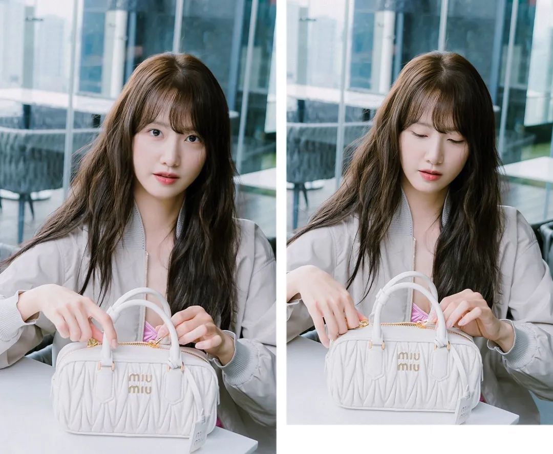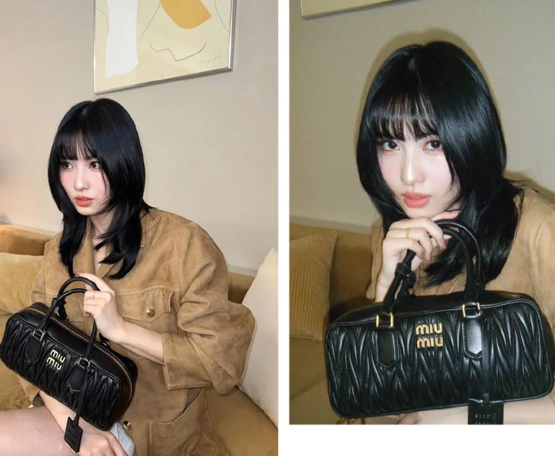 林允儿也是!她的刘海会更有空气感一点,最近MiuMiu这只包也是有够火。