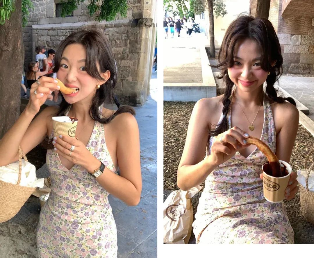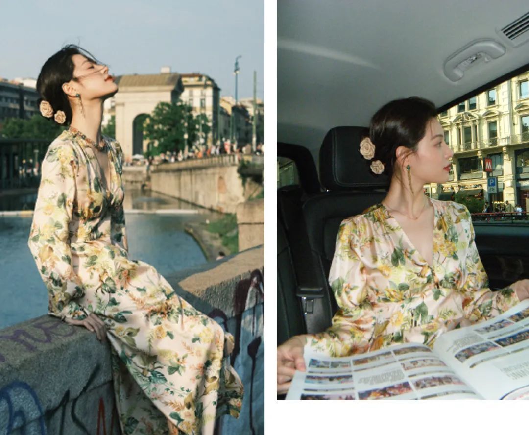 钟楚曦更优雅女人,不仅连衣裙是大花朵,就连鲨鱼夹也选了两朵小花的。