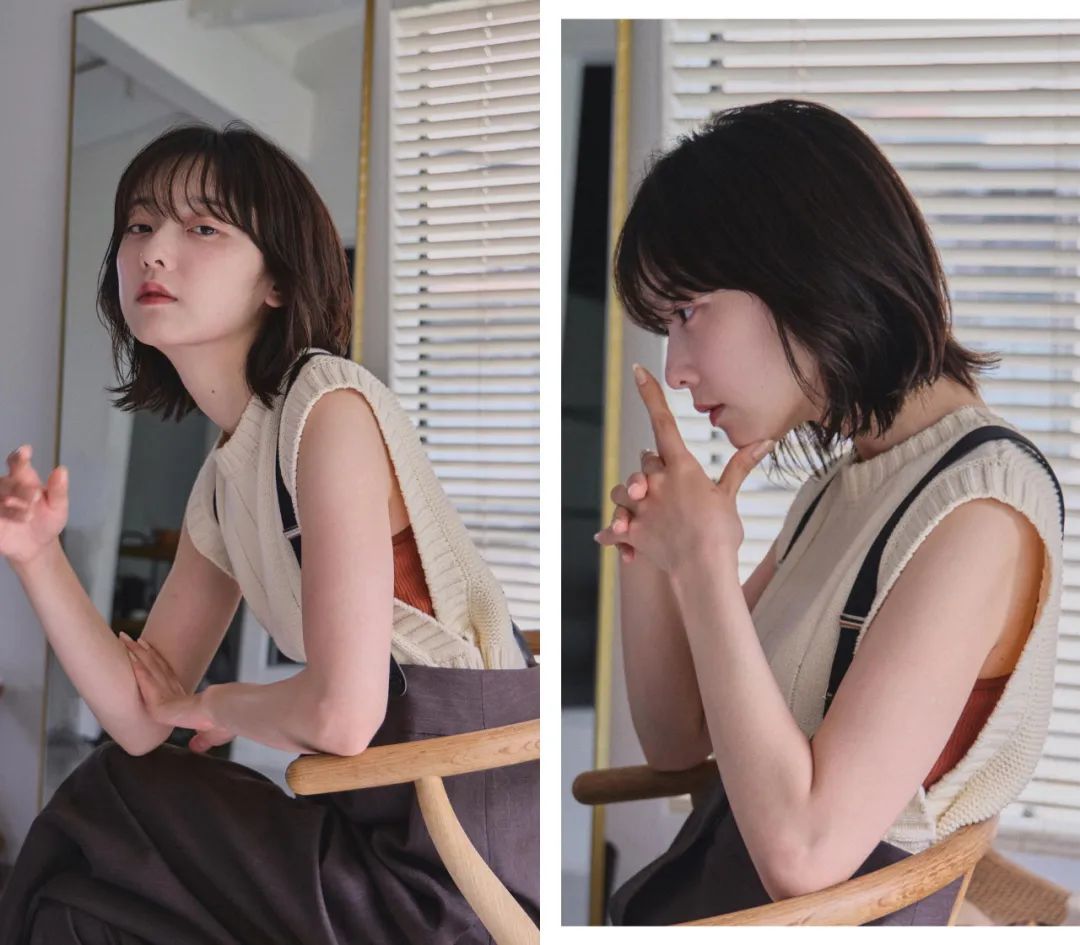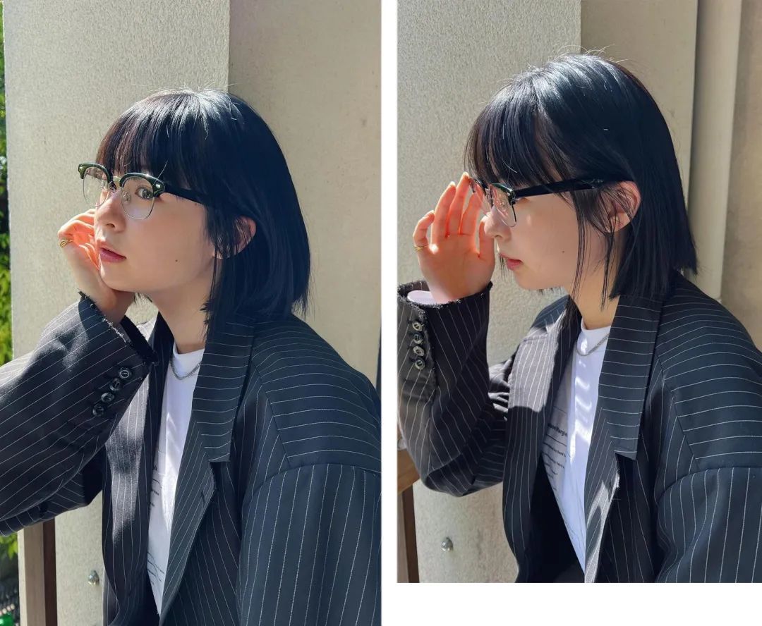 日本小姐姐们更喜欢剪到下巴长度的一刀齐,就很有她们自己的风格,甜酷甜酷的。