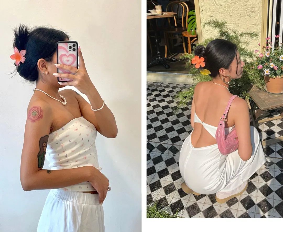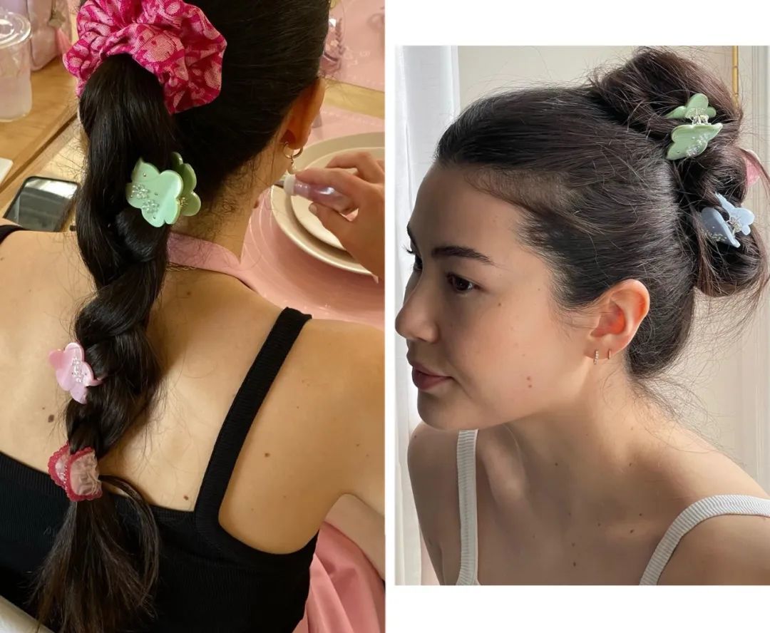 夏天我更喜欢把所有头发都夹上去,还能根据当天穿的衣服来挑选造型,营造氛围感。