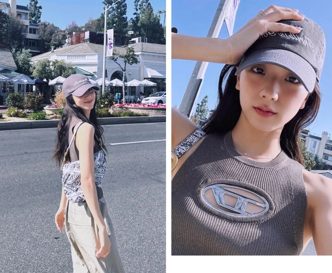 赵露思近期出门的私服造型也全部配了棒球帽。她跟欧阳娜娜有个共同点,发型都选择了披着。