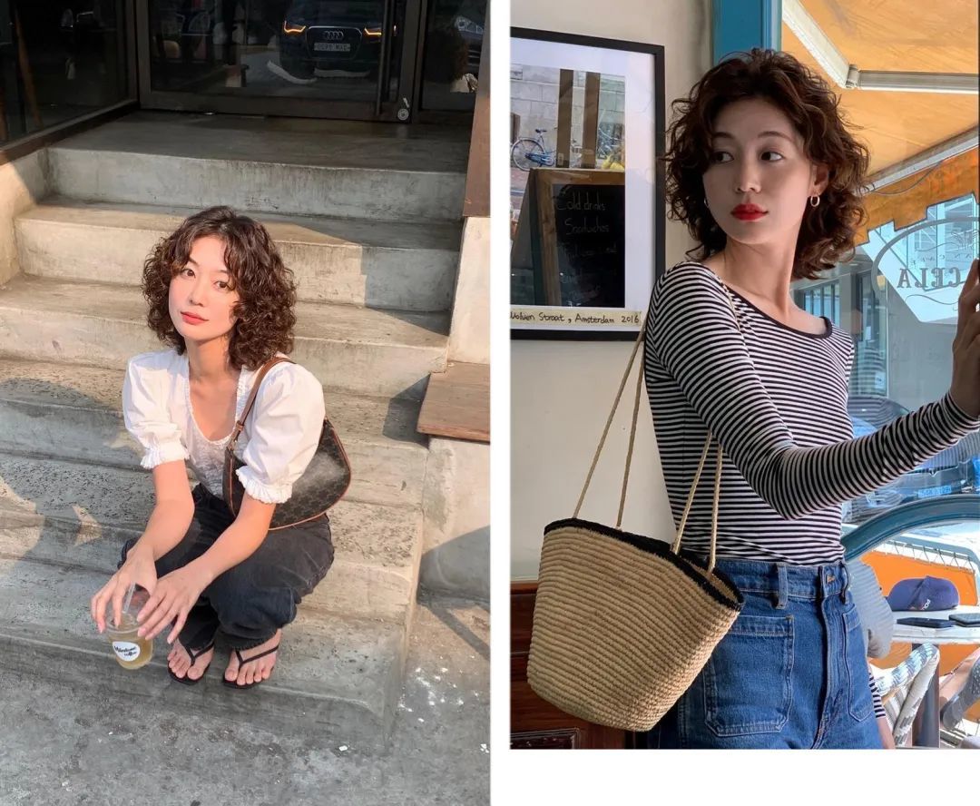 感觉这个发型就是很百搭,各种穿衣风格都能大胆尝试,即使配一件最最基础的短款小衫和牛仔裤,也会因为卷发而多赚一点回头率。