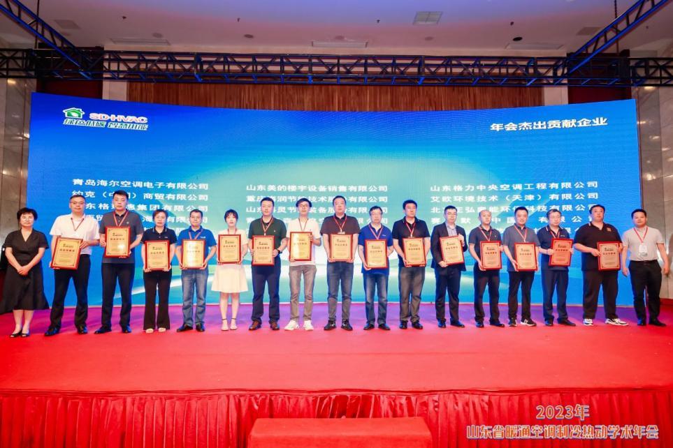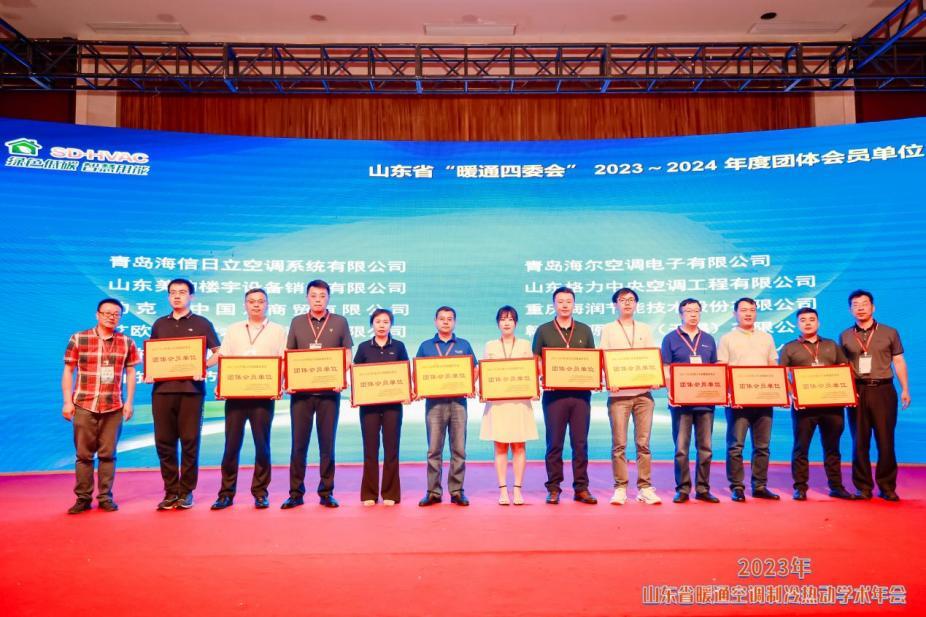 会议围绕“绿色低碳 智慧用能”的主题,针对暖通行业的热点、难点问题,全省暖通各大设计院所、高校科研人员、图审机构、建设单位、特邀专家等多位省内外知名专家学者,分别针对“碳达峰、碳中和”技术、近零能耗建筑技术、高效制冷机房设计、《建筑防烟排烟系统技术标准》应用等进行专题交流。会议开幕式上首先对2023年-2024年度山东省“暖通四委会”团体会员单位和参会企业“杰出贡献奖”与“突出贡献奖”进行了授牌和颁奖仪式,集团凭借对暖通行业做出的卓越贡献荣获“2023年山东省暖通空调制冷热动学术年会“突出贡献奖”和2023-2024年度山东省暖通四委会“团体会员单位”。