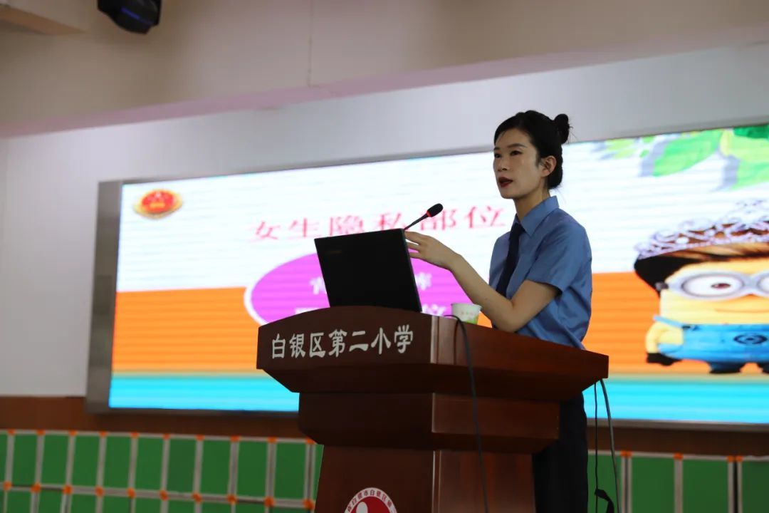 “今天带过来的案例都是结合法院工作实际的真实案例,引导同学们增强辨别性侵害的能力、防范‘熟人’作案、加强自我保护,帮助女生们牢牢筑起一面‘保护墙’。”白银区法院政治部副主任 区五小法治副校长王婧介绍。