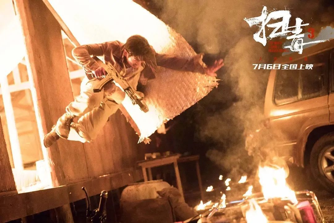 影片不惜投入大笔制作,1:1搭建近5万平的金三角毒寨场景,呈现山林突袭枪战以及重头戏——飞机重火力空袭轰炸、扫平毒寨这样更加爆裂刺激的宏大场面。