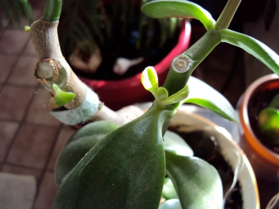 对于徒长的枝条,就只保留1/3左右的长度,这样可以最大程度上节省能量,并且促进玉树长出新的分枝和小芽。