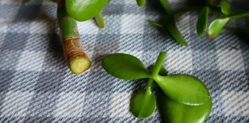摘下来的完整玉树叶片,也可以晾干伤口,之后平铺在微潮的土面上,保持光线明亮,环境通风,有一定的空气湿度,这些玉树的叶片和扦插的枝条就能缓慢生根发芽了。