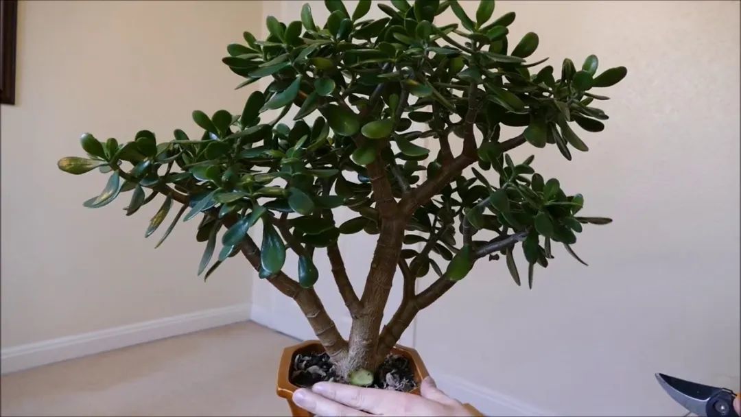 每次对盆栽玉树修剪的时候,修剪的枝叶不要超过整个植株的25%~30%。