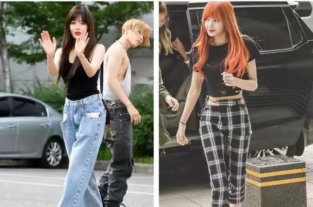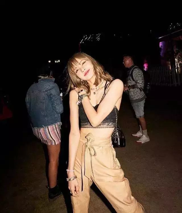 尤其是今年大热的工装裤,lisa用黑色蕾丝吊带搭配它,酷炫性感又不失甜美。