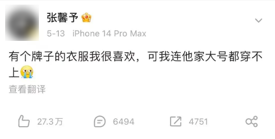 前段时间,明星张馨予发了一条微博:有个牌子的衣服我很喜欢,可我连他家大码都穿不上。炸出了网络关于成人女装尺码的大讨论。