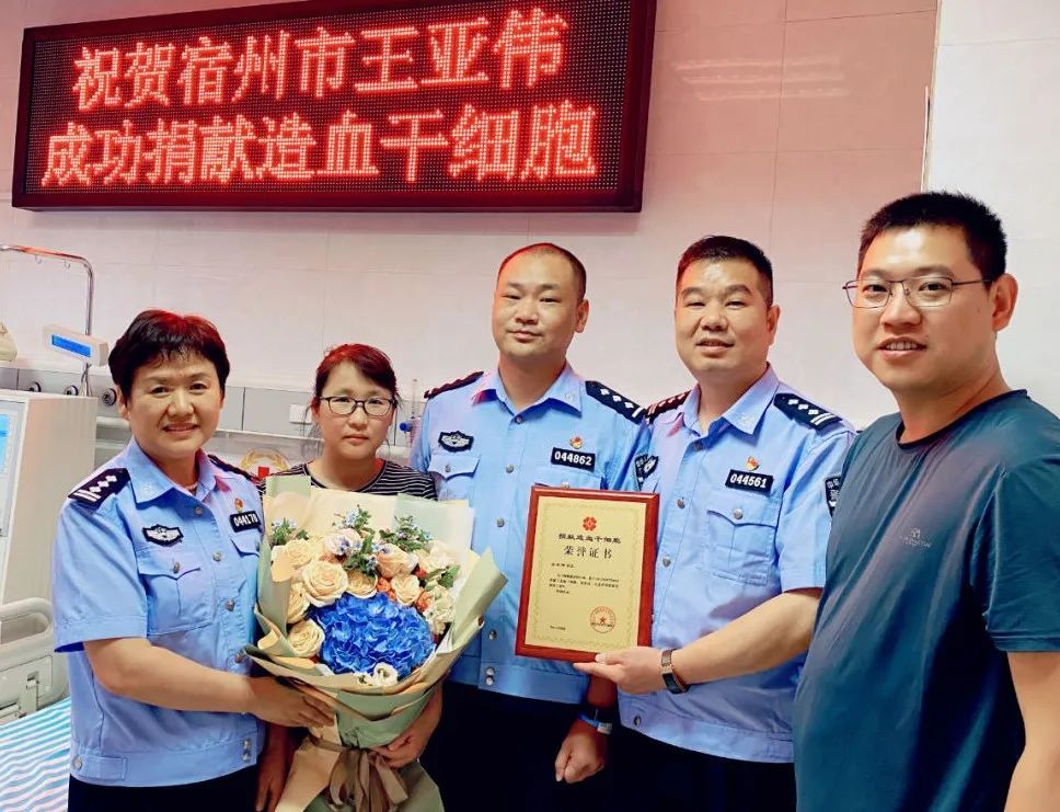 经过5天的最后准备,7月5日,王亚伟顺利完成了捐献,他捐献的造血干细胞混悬液,当天将输入受捐者体内。同时,王亚伟也成为宿州市公安系统首例造血干细胞捐献者。