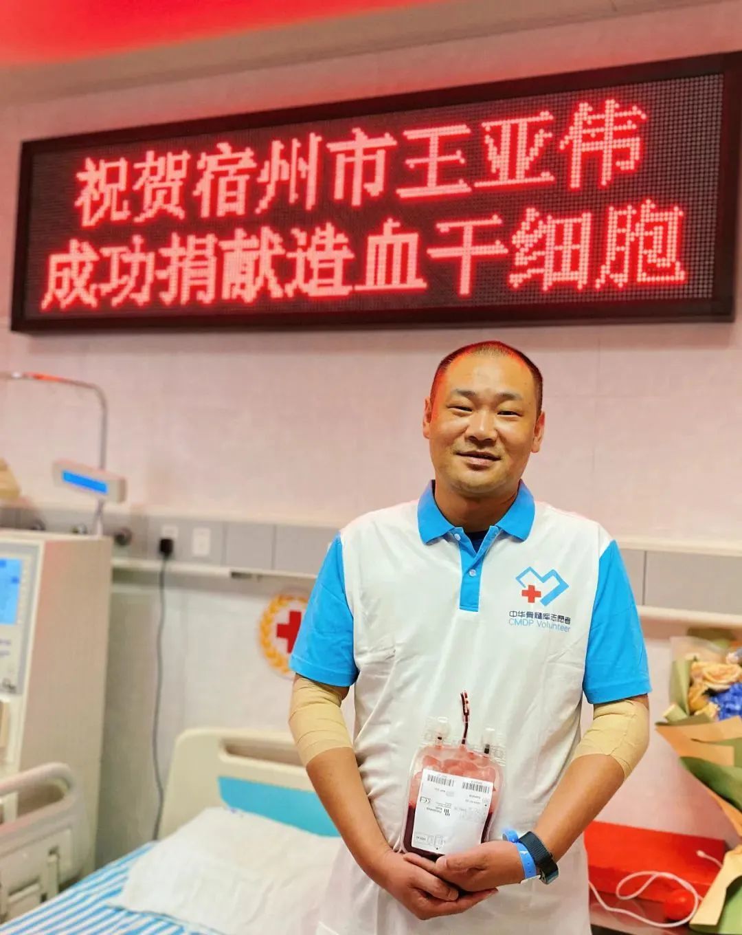 今年5月29日,正在上班的王亚伟接到了一通电话,对方是宿州市红十字会,通知他和一位患者配型成功,并询问是否愿意捐献。