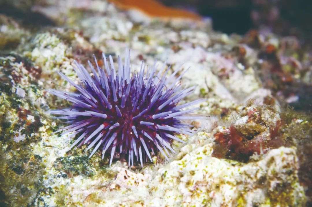 海胆是海洋里一种古老的动物,身体呈球形,有一个硬壳,上面覆盖着硬刺,看起来像一个小刺猬。这些硬刺是中空的,里面探出触角,触角末端有毒囊。当遇到异物的触碰时,海胆会像刺猬一样竖起浑身的棘刺,被它刺伤的皮肤会出现黑点,还伴随着刺痛,所以对于潜水者来说,藏匿于海里的这种刺球儿无异于“海中刺客”。
