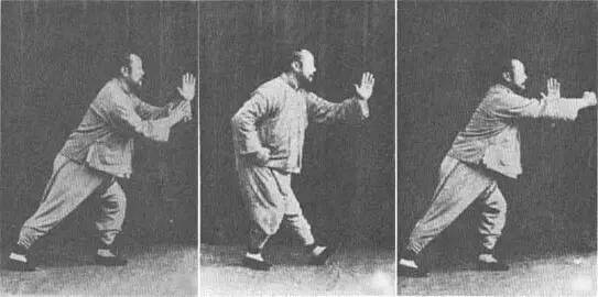 口诀:敌进我空顺而取,肩打背打势连环,左右动作如一辙,恰到好处方为准;过犹不及后悔迟,全在感觉之灵敏,采捋而进乘虚入,进步粘身始可用。