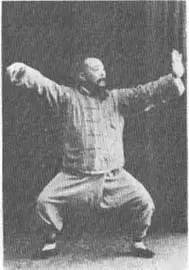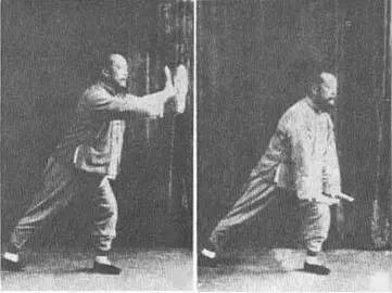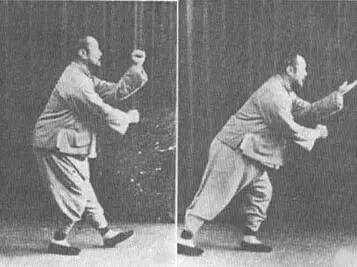 口诀:斜飞势用肩,肩中还有背,一但得机势,轰然如捣椎。肩背可作连环打,内气外势合为一,双手分为阴阳掌,发劲平衡乃不差。