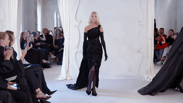 最近,女模特 Danielle Slavik(丹妮尔·斯拉维克)现身巴黎世家 BALENCIAGA 高定秀场,再次回到T台上。