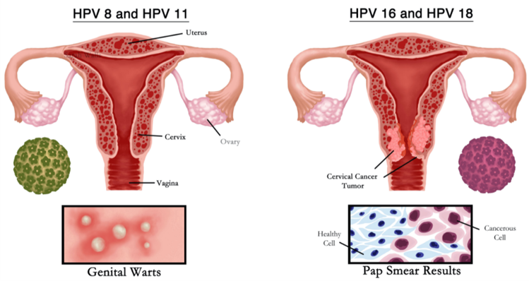 HPV病毒通过解剖学上可接触的位置感染基底上皮细胞,例如皮肤、生殖器官和口咽区域的微小病变等。衣壳蛋白L1和L2附着在上皮细胞受体上,最终其基因组进入受感染细胞的细胞核,进行转录和复制。病毒体成熟之后进行组装和释放,并且与与上皮细胞生命周期结束时衰老细胞的自然脱落一致[9]。
