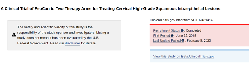 VGX-3100由两个DNA质粒组成,分别编码HPV-16和HPV-18的优化合成共识基因E6和E7,由INOVIO公司(NASDAQ: INO)开发。2023年3月, VGX-3100治疗子宫颈上皮内瘤样病变的III期临床topline数据公布,治疗组27.6%的患者达到组织病理学转归而且病毒清除的主要终点,安慰剂组则只有8.7%,达到预设主要、次要终点,且安全性良好,没有与治疗相关的严重不良事件发生。
