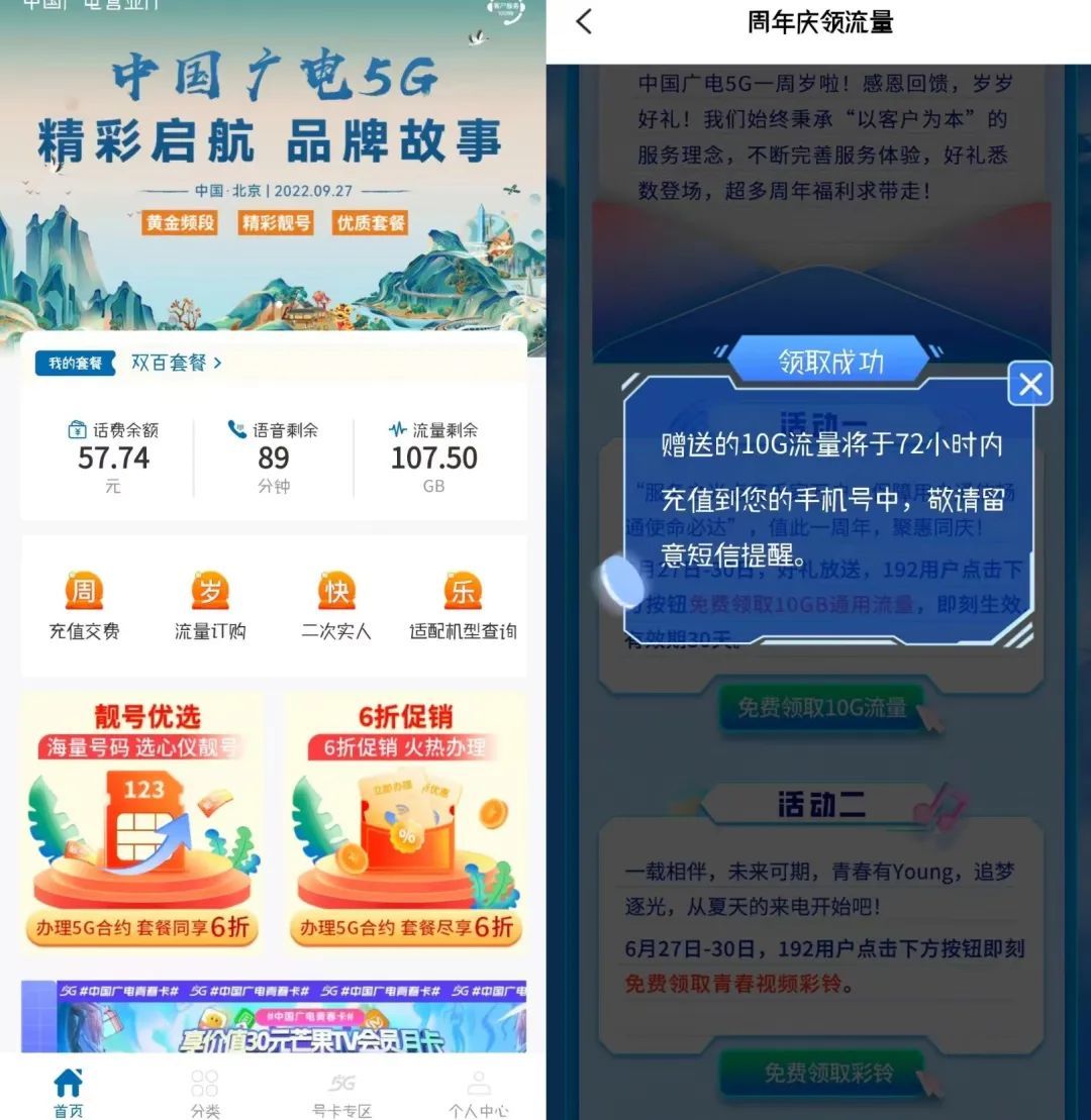 它最近搞周年庆,在”中国广电“ APP 的首页,能领取 10GB 流量,还算挺大方的。