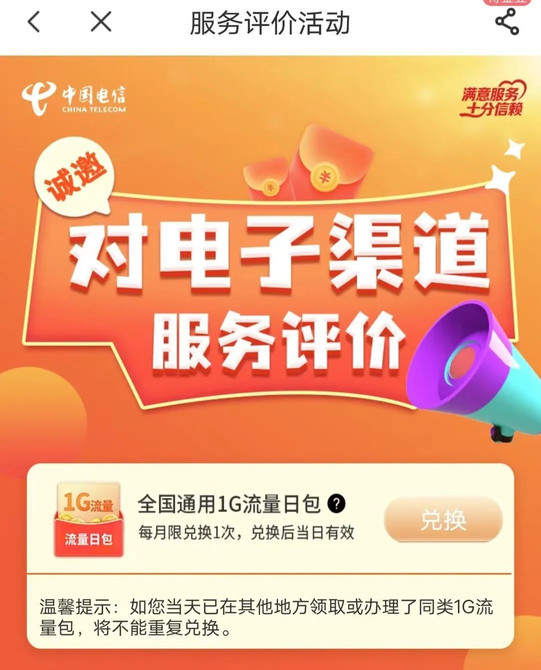 在 APP 里搜索”服务评价“,完成评价之后,能获得 1GB 的流量包。