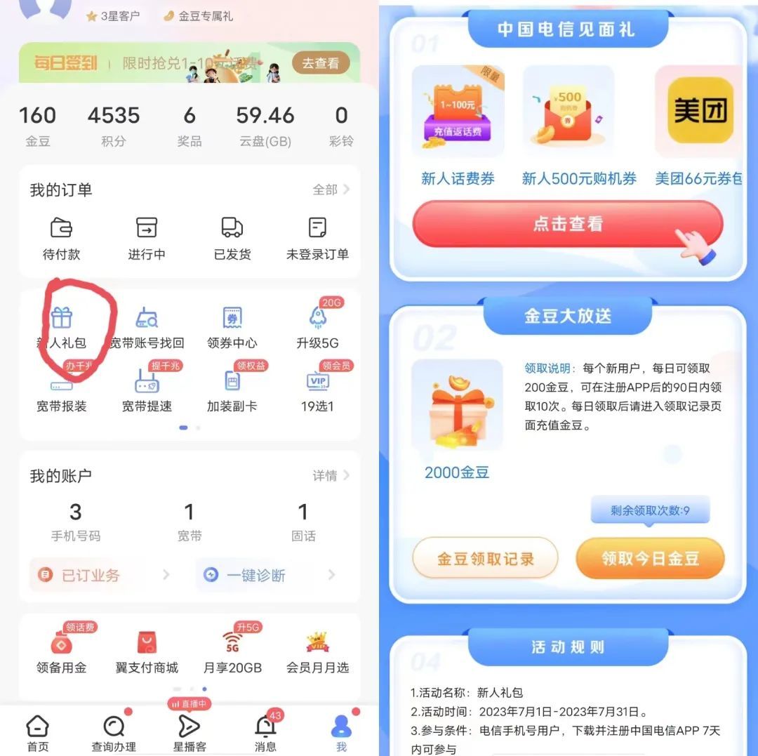 接下来,机哥也给电信用户展示一下如何薅羊毛。